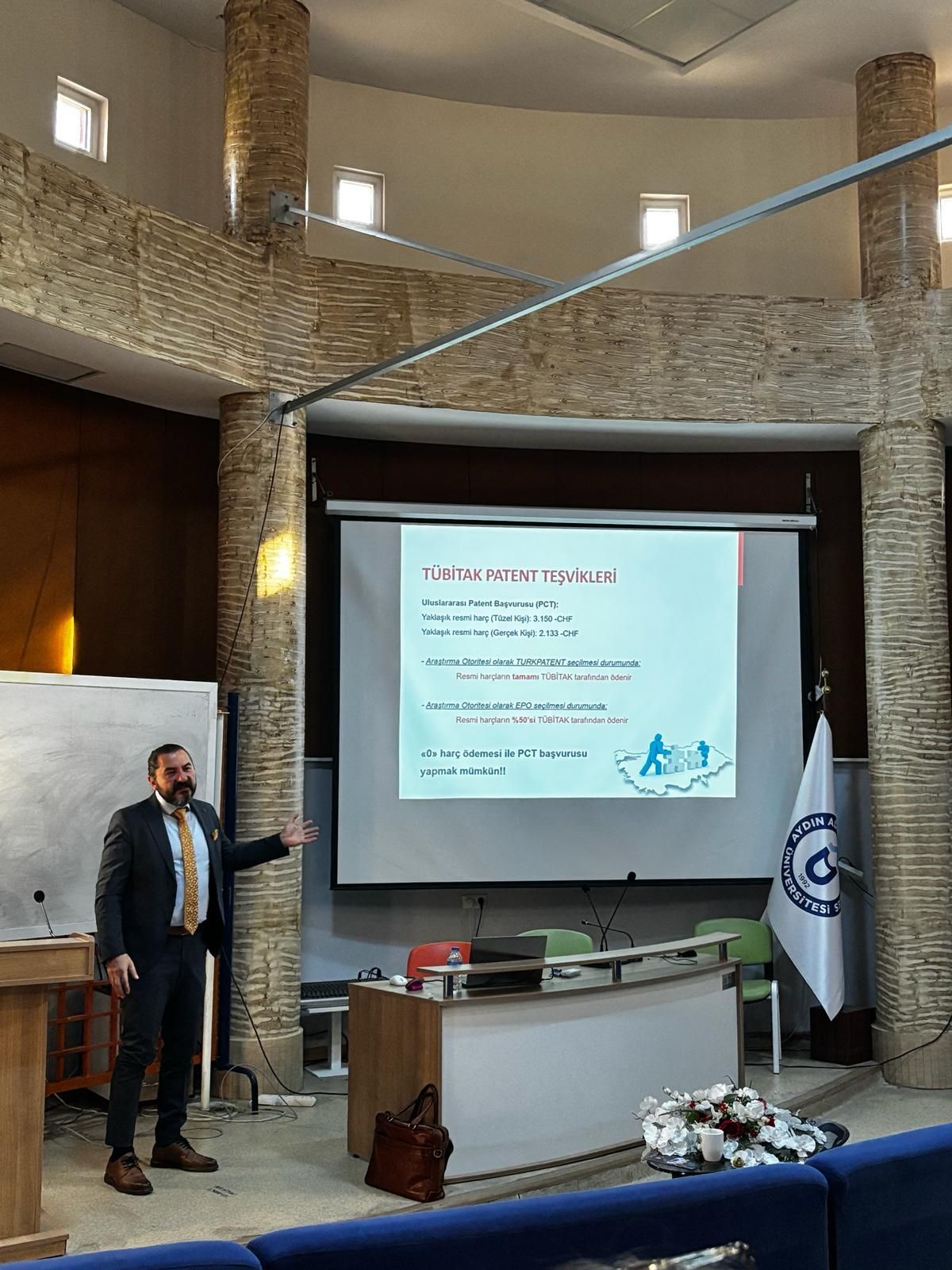 Aydın Adnan Menderes Üniversitesi Proje ve Ar-Ge KoordinatörlüÄŸü tarafından düzenlenen “BuluÅŸların Patentlenme Süreçleri ve Stratejileri” konulu eÄŸitim baÅŸarılı bir ÅŸekilde tamamlandı. Fikrî mülkiyet haklarının önemi, patent baÅŸvuru süreçlerinin aÅŸamaları, buluÅŸ tescilinde dikkat edilmesi gereken noktalar ve etkili patent stratejileri detaylı ÅŸekilde ele alındı.