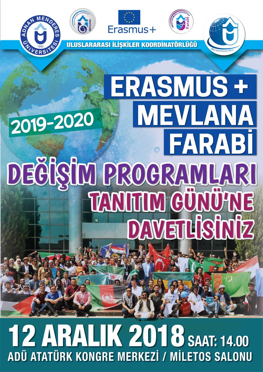 "Erasmus+ Mevlana Farabi Değişim Programları Tanıtım Günü 12 Aralık 2018 tarihinde saat 14.00'da Atatürk Kongre Merkezi Miletos Salonunda gerçekleşecektir."